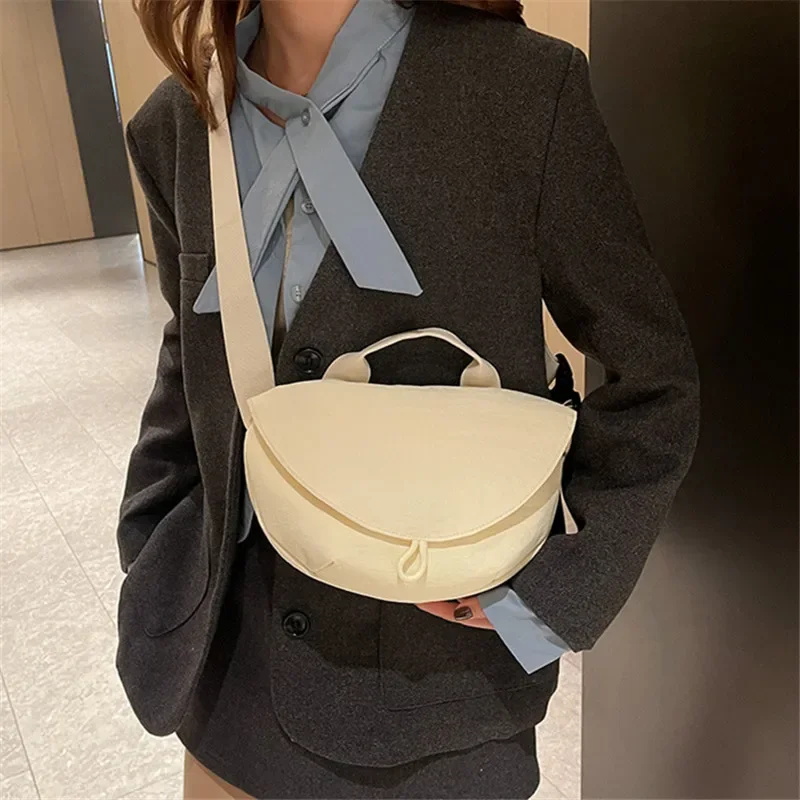 Lightweight Women’s Bags, Stylish Cross Canvas Bag, Nylon Tote Bag, Solid Color Design Single Shoulder Bag, Handbag Cloth Pouch