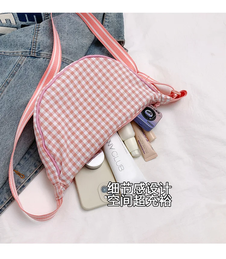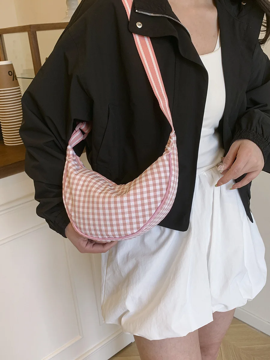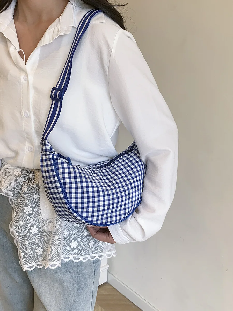 Simple Design Women’s Plaid Hobos Shoulder Bag Versatile Female Nylon Crossbody Bags Travel Girls Underarm Bag Handbags Purse